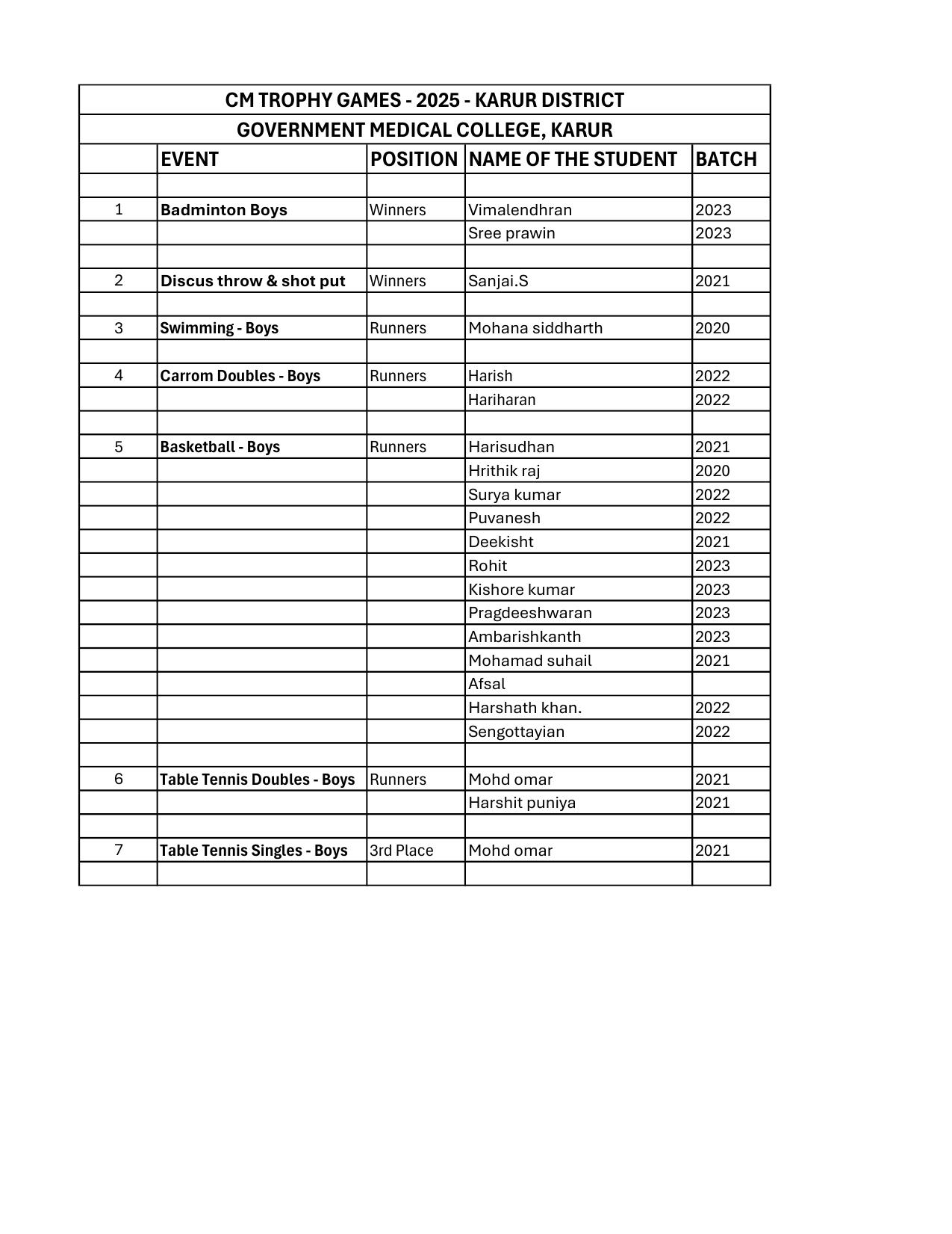 LIST OF CM SPORTS TROPHY WINNERS - 2025 (BOYS)